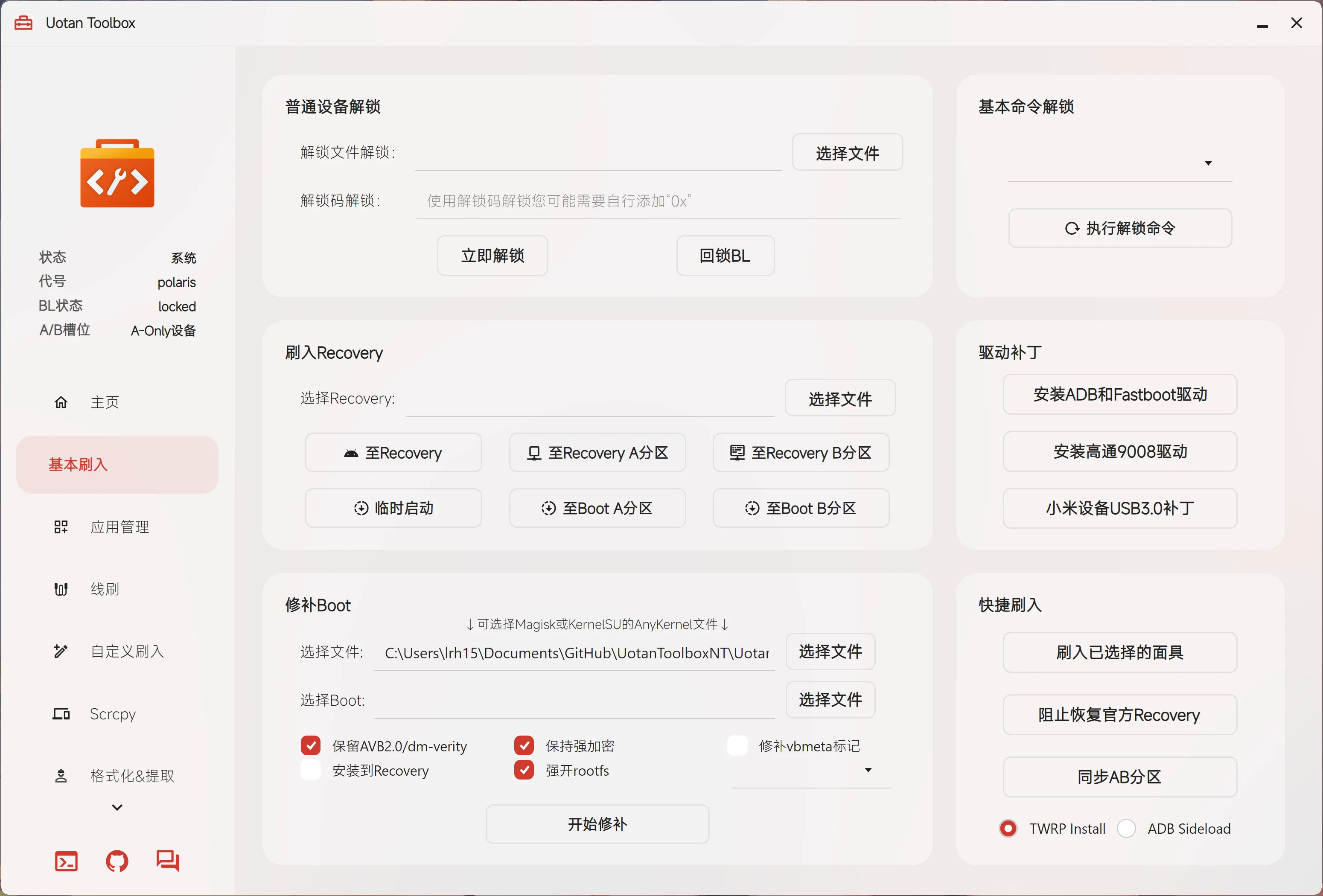 - macOS运行须在终端执行命令:sudo xattr -r -d com.apple.quarantine UotanToolbox.app
